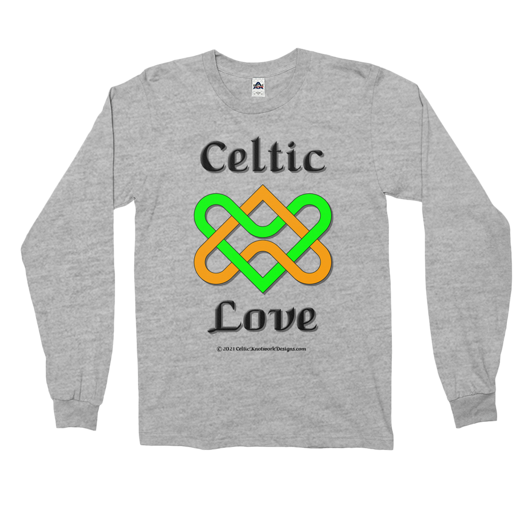 Celtic Love Heart Knot long sleeve shirts also feature rib sleeve cuffs and double needle bottom hem for added durability.